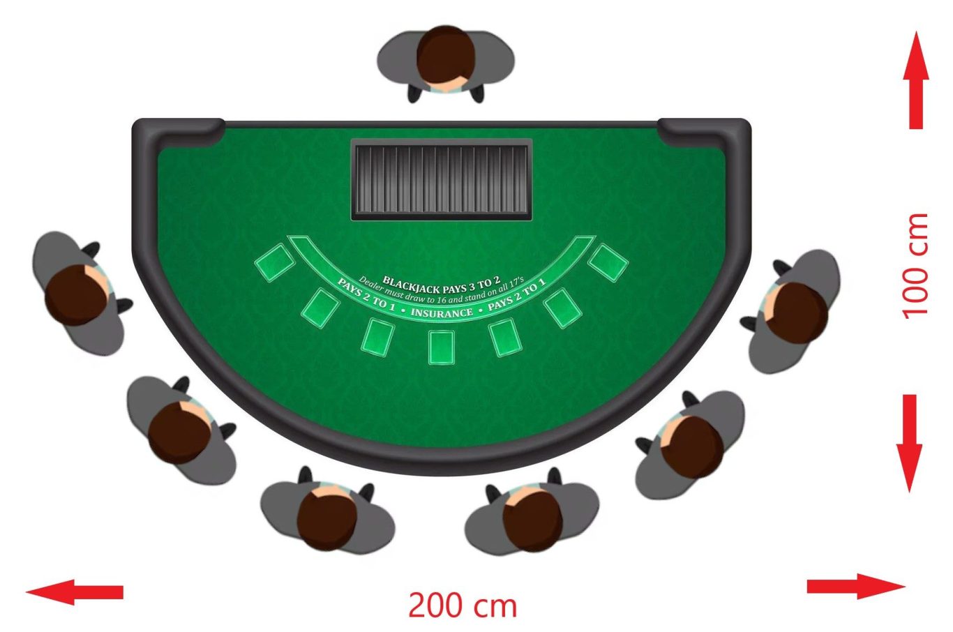 Afmetingen black jack tafel