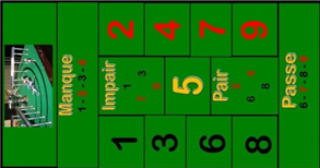iedere speler mag maximaal twee winnende paarden kiezen, uitbetaling volgens koerskaart. - Pair of impair, inzet op de even of oneven paarden.