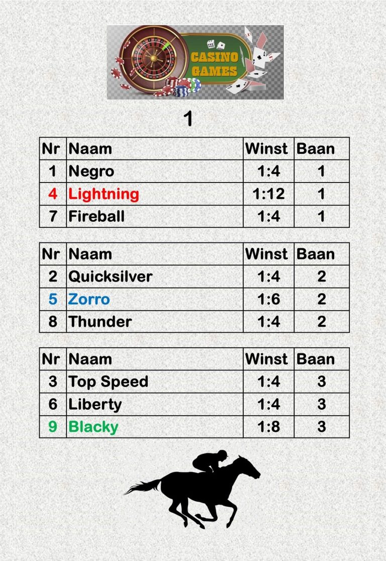 Baan 1: Paarden met nummers 1 - 4 - 7